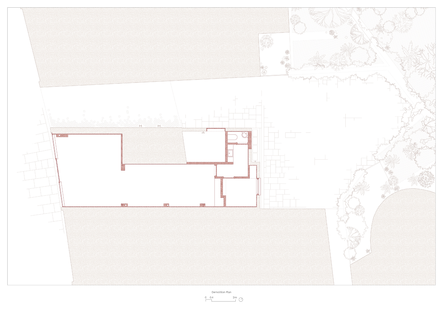 Visible from the street is the main ‘retail’ space, conceived as a room to be worked in during the day and lived in outside of office hours. A kitchen worktop returns to address the space as a serving counter, limiting access to the more private rear spaces and allowing occupants to welcome customers to the space come market day. In this manner, the adjustability of the façade is extended to the arrangement of the plan with the intention that the space can accommodate a variety of future occupants and occupations.